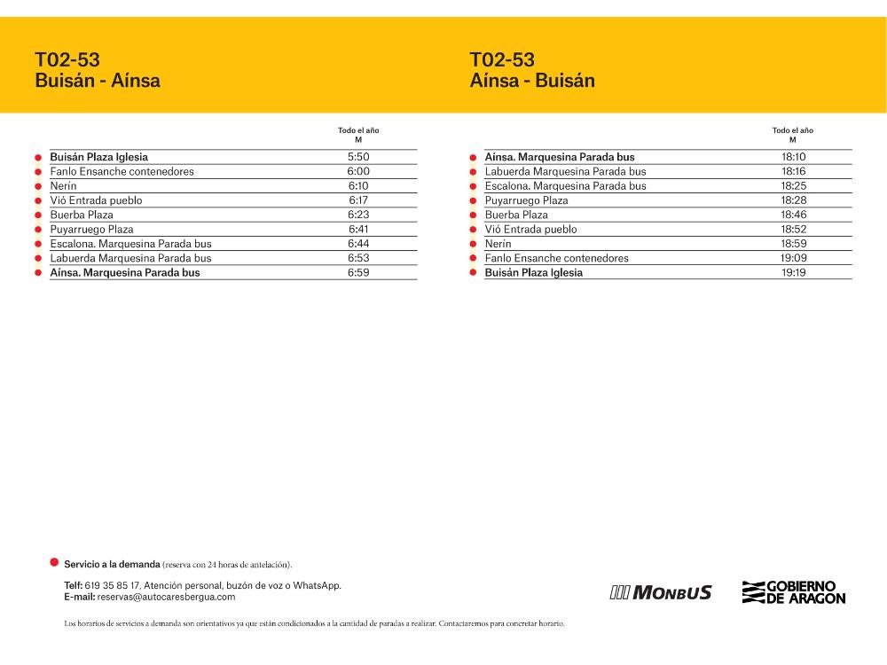 Servicio BUS a demanda BUISÁN - AÍNSA los martes